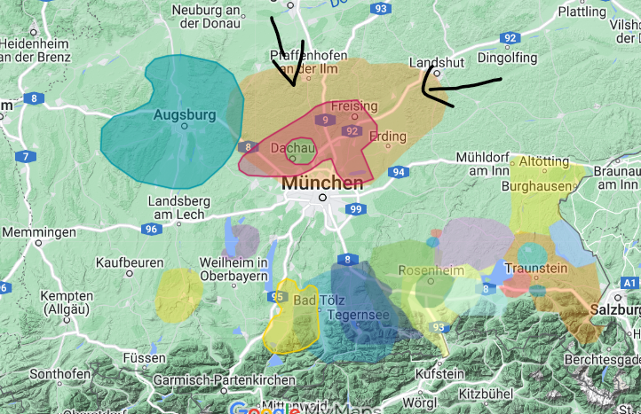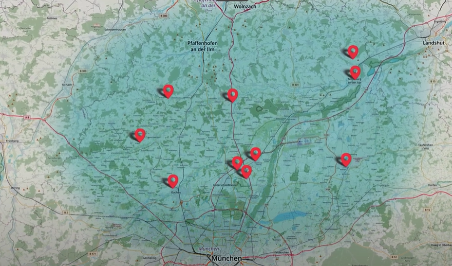 Wir decken damit eine Region von 50 km / 1 Stunde um Neufahrn ab.