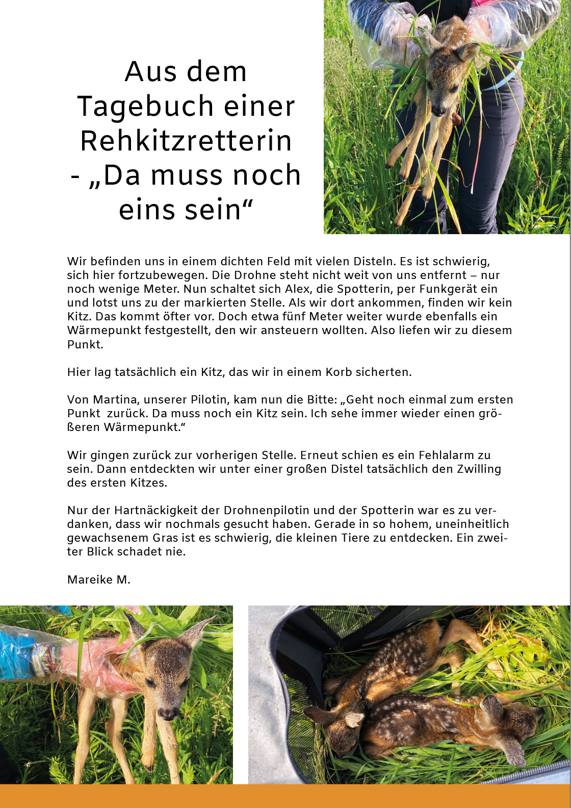 Verwendungszweck: Hilfe für Rehkitze